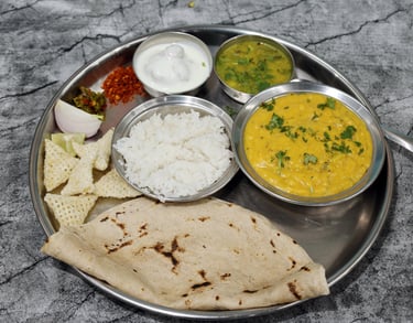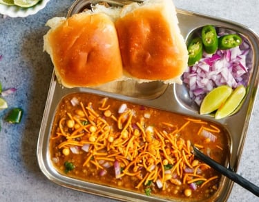 A traditional menu of Kolhapuri misal, pithla bhakari and puranpoli with authentic spicy flavors.